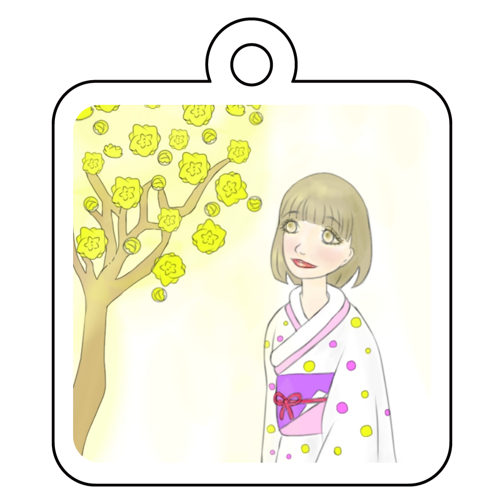甘いかおりが漂ってきそう 蝋梅と着物の女の子 アクリルキーホルダー