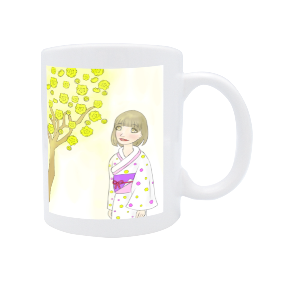 甘いかおりぎ漂ってきそう 蝋梅と着物の女の子 マグカップ