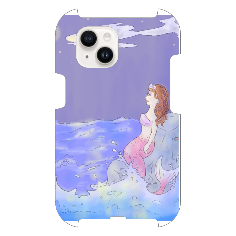月夜を眺める人魚姫 ロマンティックなイラスト入りiPhoneケース (iPhone15)